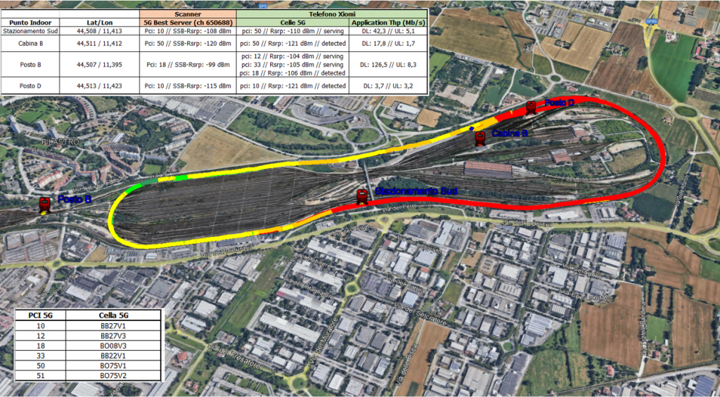 The Trials are being performed on a real railway network represented by a railway circuit devoted to conformance approval of new trains and machinery, with real sensors, placed on ground on or near the rails (wayside sensors), and with a fully operational diagnostic train, preexisting to DINoS5G but fitted with DINoS5G communication facilities.